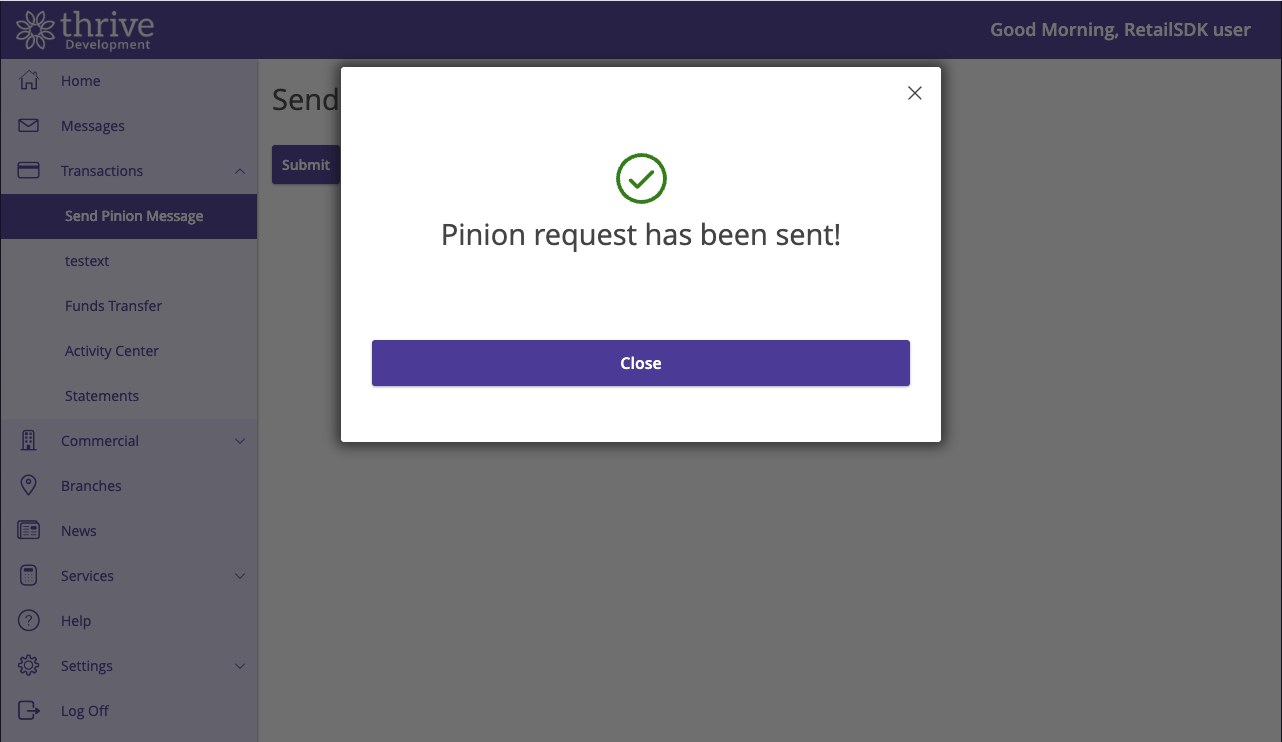 Pinion is a set of services that deliver real-time, asynchronous notifications directly into a user’s Online Banking session via a socket.io